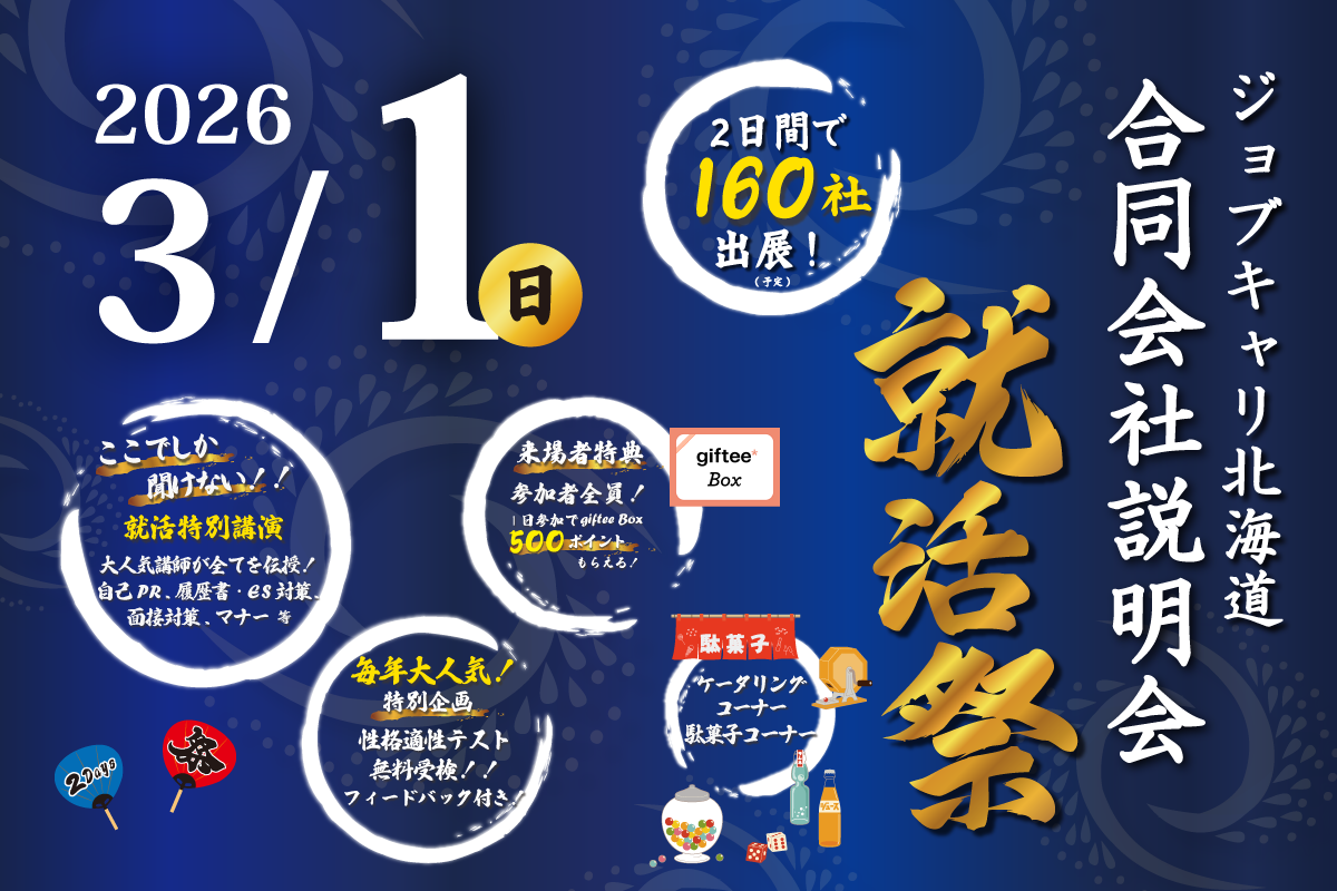 2026年3月1日(日)開催 ジョブキャリ北海道主催『就活祭』参加します。