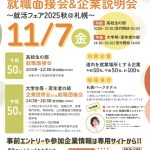 2025年9月26日 / 最終更新日 : 2025年9月29日 nazca 就活イベント 2025年11月7日(金)開催『就活フェア2025秋@札幌』参加します。 日時:2025年11月7日(金) 14:30~16:30 (受付14:00) 【午後のみ参加です!】 場所:札幌パークホテル(北海道札幌市中央区南10条西3丁目1−1)[地図] 対象:26卒 […]